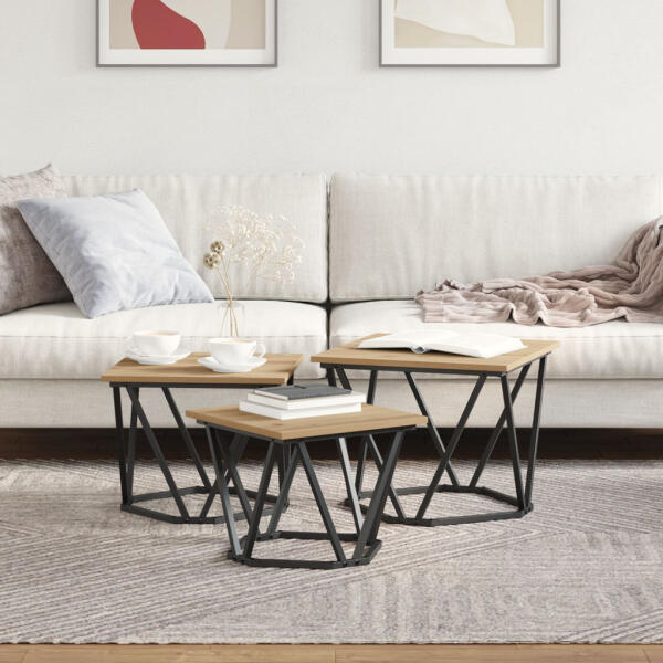 vidaXL Oldalasztalok 3 db Artizan Tölgy Műszaki Fa (868284)